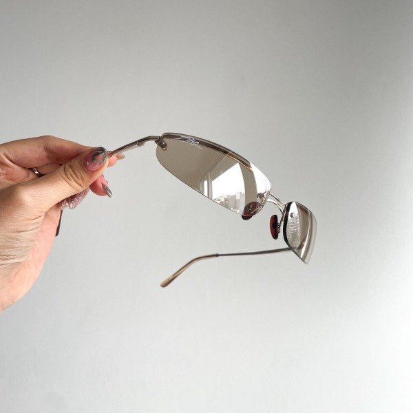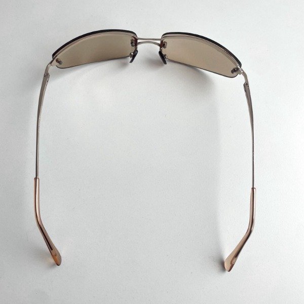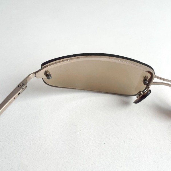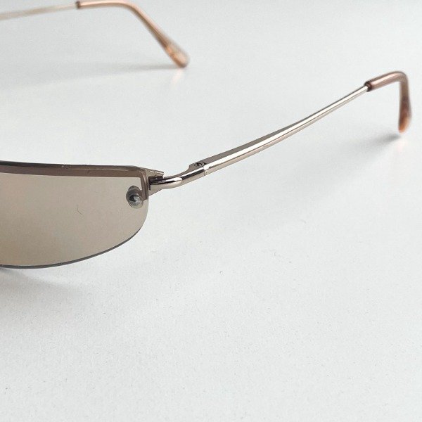 Lentes con cristal marrón claro espejado y medio marco dorado, estilo envolvente.