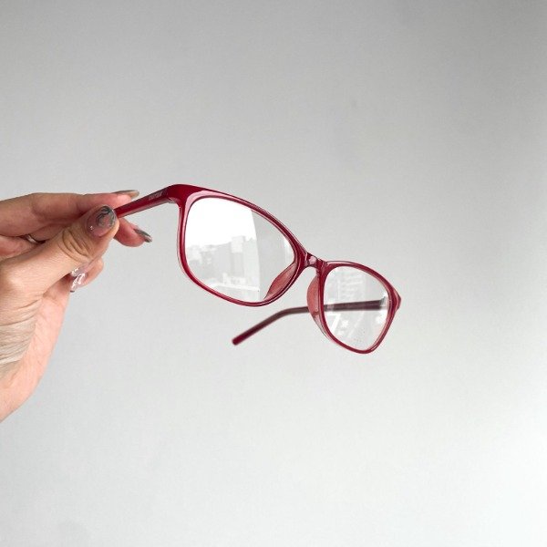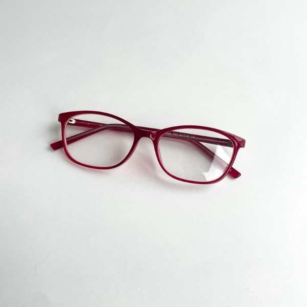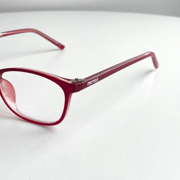 Armazones con marco color rojo y lentillas transparentes sin graduación, Marca Matrix.